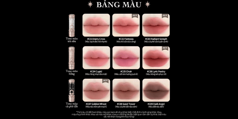 - Son môi: màu sắc đa dạng, dễ sử dụng, phù hợp nhiều phong cách